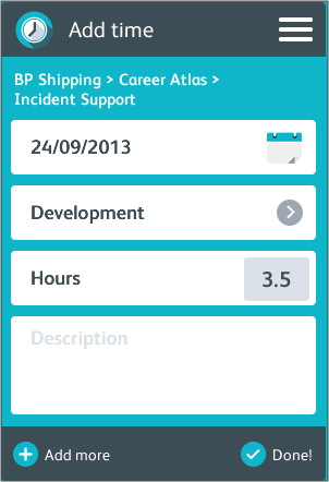 A redesign of a cumbersome time logging application, originally built in Lotus Notes. The new app was designed to be responsive, fun and fast - with added features such as the ability to add favourites as a shortcut, and a dashboard to see an overview of your weekly productivity.